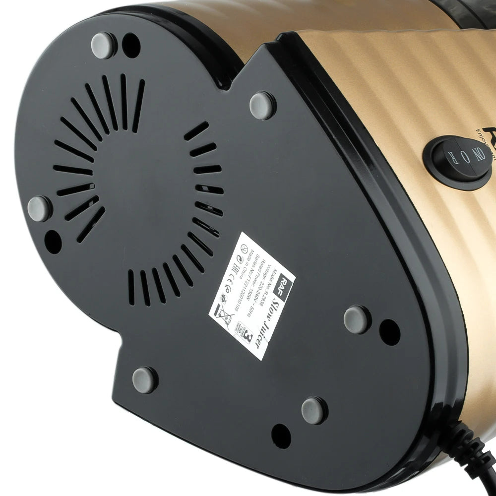 - Con un sistema de exprimidor de estilo masticable de baja velocidad de 75 RPM, el exprimidor lento puede mantener el color puro, el sabor natural, las vitaminas y los nutrientes de las frutas y verduras, las verduras de hoja. El exprimidor de prensa en frío tiene un potente motor de CC silencioso de 150 vatios que hace que el jugo sea más eficiente.
