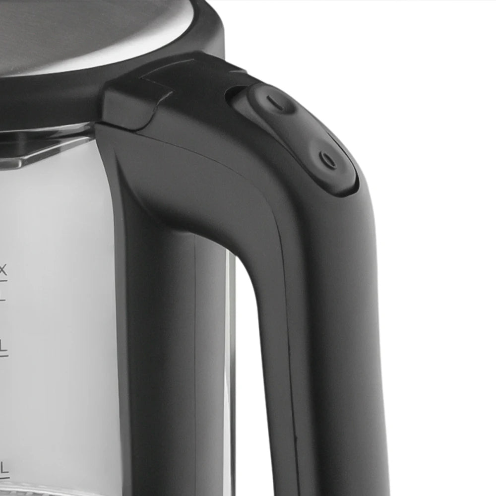 - Completamente inalámbrico cuando está fuera de la base, le permite verter fácilmente y sin obstáculos. El cuerpo de vidrio giratorio transparente de 360 ° es perfecto para medir con precisión el agua.