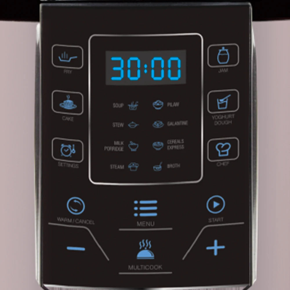 - Menú multifunción: El Panel de control de fácil navegación ofrece un menú multifunción para seleccionar diferentes modos y ajustes de cocción.