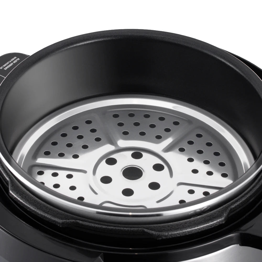 - Menú multifunción: La olla a presión tiene varias funciones de cocción, que probablemente incluyan ajustes preestablecidos para diferentes tipos de platos.
