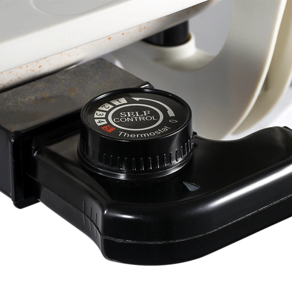 - Control de perilla: La temperatura se puede ajustar fácilmente con un control de perilla, lo que le permite establecer el nivel de calor perfecto para varios platos.