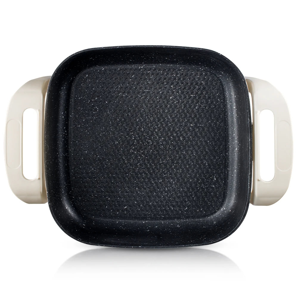 - Revestimiento antiadherente: El interior cuenta con un revestimiento antiadherente, lo que garantiza que los alimentos no se peguen a la superficie, lo que facilita su limpieza y mantenimiento.